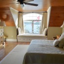 Upstairs, the five bedrooms continue the theme of natural light and hardwood textures paired with clean white finishes. The second floor includes a primary bedroom wing with a full ensuite, a guest family wing with two bedrooms, and additional accommodations for children. With a total of four bathrooms servicing the upper bedrooms, Lake Joe Wonderland ensures comfort and luxury for all guests.