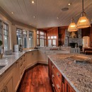 Gather around the main island or the bar stools while enjoying the culinary delights prepared in this sun-drenched kitchen. Marble countertops, double sinks, and a Bosch dishwasher contribute to the kitchen's functionality, while a private prep kitchen with a Frigidaire professional freezer/fridge ensures ample storage space.