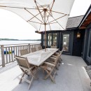 At the heart of this retreat lies a private one-bedroom boathouse with two slips, complemented by multi-tiered docks, providing ample space for relaxation and recreation. The main cottage, a five-bedroom haven, basks in the Southwestern sun exposure, ensuring nearly uninterrupted daylight throughout the day on its dock and veranda. Delight in the breathtaking sunsets over Lake Joseph from the tastefully furnished Muskoka room, an extension of the main cottage featuring outdoor lounge furniture and dining for six.
