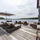 Traverse through meticulously landscaped gardens and a stone stairway to reach the water's edge, where a sprawling 1000 sq. ft swim dock and boathouse await. Despite the descent via a set of stairs, the presence of a boathouse ensures that you can relish in all-day comfort and dining down by the dock.