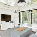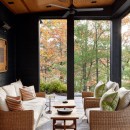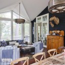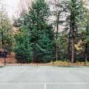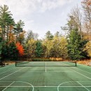 At the heart of Driftwood Island Retreat sits a full-sized tennis court complete with basketball nets and a 600-square-foot tennis pavilion atop a granite patio with outdoor seating. Following the path from the tennis court leads to a charming one-story boathouse tucked behind a picturesque point with seating and sunset views. The boathouse, boasting two slips, features an outdoor lounge area facing south.