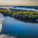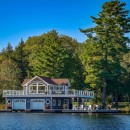 Above the garage, the coach house provides extended family or guests their own retreat, complete with a sitting area, kitchenette, two bedrooms, and a three-piece bath. Down at the lower boathouse, indulge in waterside leisure with two slips, an indoor/outdoor entertaining area, beverage fridge, powder room, and laundry facilities. The upper boathouse offers a bright space with a kitchenette, sitting area, and desk space for work or relaxation, along with a deck boasting panoramic water views.