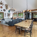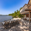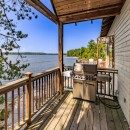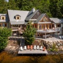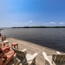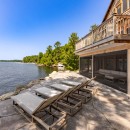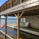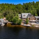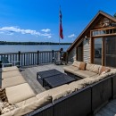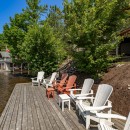 Welcome to Living The Dream, private waterfront oasis boasting 312 ft of frontage, where luxury meets tranquility at every turn. Step onto the expansive front deck lounge, offering panoramic views of the lake. Muskoka chairs beckon from the deck, inviting you to relax and unwind. Nearby, the dock awaits with more Muskoka chairs, perfect for lakeside lounging. A separate deck features cozy lounge furniture, ideal for outdoor gatherings. The boathouse, a centerpiece of the property, includes three boat slips — two sheltered within and one in a covered boat port. Above, the sun deck from the upper boathouse offers plush lounge furniture and stunning lake vistas. A charming bridge connects the main cottage to the boathouse, enhancing the property's charm.