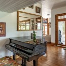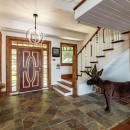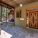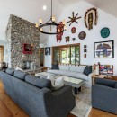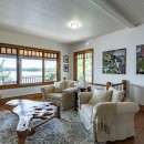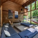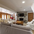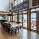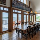 Enter the main level and discover a chef's dream kitchen with two islands, stainless appliances, and a six-burner gas range (Wolf). Adjacent, the dining room showcases an elegant table for twelve and direct access to the deck. The Great Room awaits with a two-sided decorative fireplace, providing ample seating for relaxation. A reception room features a baby grand piano and opens onto the expansive deck. Descend to the lower level, where a rec room offers a sofa, TV, and access to a spacious Muskoka room with automated screens.