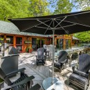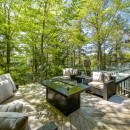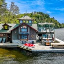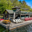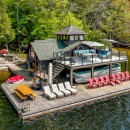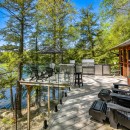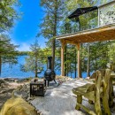Escape to Muskoka Wonderland, a secluded retreat set amidst over 4 acres of pristine woodland. This serene haven opens into a sprawling, landscaped yard and private beachfront, where a meandering granite walkway guides you past a hot tub and boathouse directly to the water's edge. Natural pathways wind through the property, leading to an inviting outdoor fire pit and various cozy spots furnished with outdoor lounge furniture. The two-level boathouse offers stunning views of the lakefront swimming area, completing the perfect outdoor oasis.