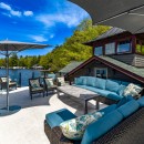 For extra accommodations, the bunkie provides additional comfort and privacy. The state-of-the-art gym is equipped with everything needed for a comprehensive workout, including a TV, free weights, pedal bikes, elliptical, weight machines, rowing machine, and more. Climate control, a Sonos Sound System, and refreshments from a stainless steel bar fridge ensure a comfortable exercise experience.