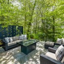 The Muskoka room offers a fully screened-in, three-season retreat with an oversized outdoor wicker sofa, matching chairs, and a coffee table, ideal for enjoying the outdoors bug-free. Downstairs, the family room beckons with a cozy gas fireplace, QLED 4K flatscreen TV, and a BOSE surround sound system. Radiant heated floors and sliding patio doors leading to the backyard add to the allure of this inviting space.