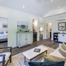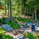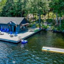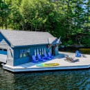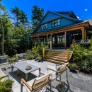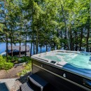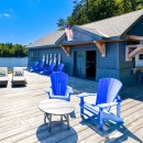 Indulge further with a visit to the hot tub just steps above the water, or follow flagstone steps cascading to the tranquil waterfront. For midday relaxation, our boathouse cabana bar beckons with four barstools and refreshing drinks. Nearby, chaise loungers and Muskoka chairs offer panoramic views of the surroundings. As night falls, gather around the fire pit with classic Muskoka chairs or stroll to the dock for a breathtaking Muskoka sunset.