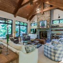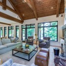 Inside the main cottage, discover a chef's dream kitchen with a spacious island, high-end appliances, and a dining room for 12. The great room boasts timber beam ceilings and a stone fireplace, while the Muskoka room offers year-round comfort with a wood-burning fireplace. The lower level rec room features a cozy setup with a flatscreen TV and Peloton bike for entertainment and fitness. Outside, the boathouse extends luxury with a cabana-style bar and essential amenities. Escape to our charming Bunkie, perfect for quiet moments with its inviting living space.