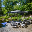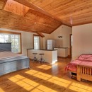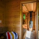 Evenings by the water are enhanced by a fire pit surrounded by ten Muskoka chairs, under the Muskoka starscape. Nestled in the trees, a luxurious wood-fired sauna provides soothing views of the water. Nearby, two hammocks sway near the beach, ideal for a mid-day nap.