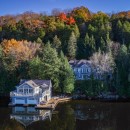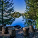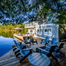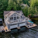 Take a stroll down the well-lit stone path to the boathouse, where breathtaking views and lush hydrangeas await. Enjoy evenings by the fire pit with friends or family, and relax in one of the numerous outdoor seating areas, including loungers and Muskoka chairs. For the adventurous, there’s a treehouse, zip-line, and hammock to enjoy. Swim in the inviting sandy walk-in or dive from the boathouse into deeper waters.
