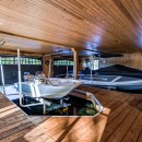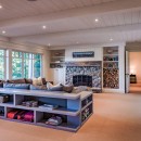 On the lower level, the cozy rec room includes another oversized sofa and a gas fireplace, with direct access to the stone patio. The upper boathouse, filled with natural light, offers gorgeous lake views and includes a kitchenette for your convenience. The lower boathouse features a mini bar, sauna, and shower, enhancing your lakeside experience.