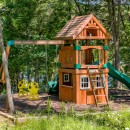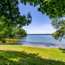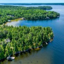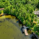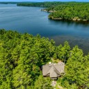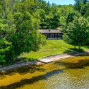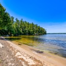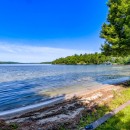 The cottage sits on a sprawling property surrounded by towering trees, ensuring ultimate privacy and tranquility. The large deck off the kitchen and living room offers beautiful northwest exposure and plenty of space for outdoor gatherings. A stone pathway leads you to the water's edge, where you’ll find a rocky shoreline and shallow water off the dock—perfect for a refreshing swim or a relaxing paddle. For those who love outdoor adventures, the property also features a children's playground, a waterside fireplace for cozy evenings, and a nearby municipal sand beach just a short walk away.