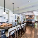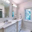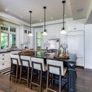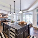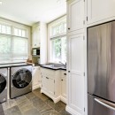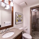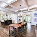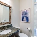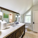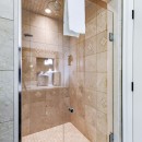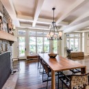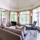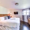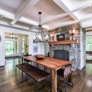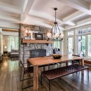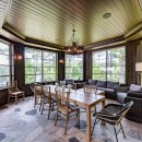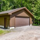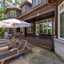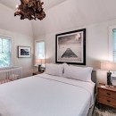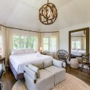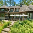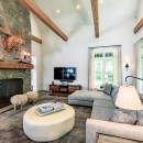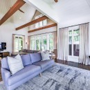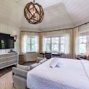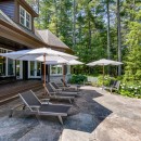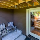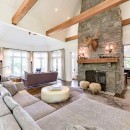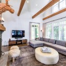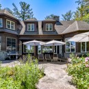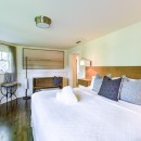 Just Fabulous boasts a stunning interior designed for both style and comfort. The kitchen is a chef’s dream with a large island, state-of-the-art appliances including a Wolfe gas stove, Miele dishwasher, and a wine fridge. There’s even a mudroom with an additional refrigerator for extra storage. The dining room features a spacious table that seats 8, with a double-sided wood-burning fireplace that connects to the cozy living room, which has vaulted ceilings, another wood-burning fireplace, and a TV for entertainment. The Muskoka room extends the living space with outdoor furniture and a perfect view of the lush surroundings.