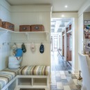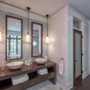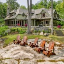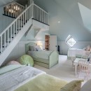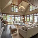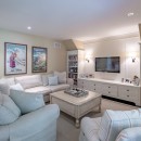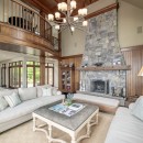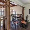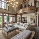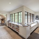 The upper level includes a cozy TV room with a sectional sofa and desk, as well as a games table overlooking the great room. With additional window seating in the hallway, this home offers both style and functionality, making it an ideal retreat for family and friends.