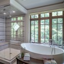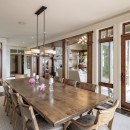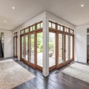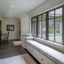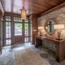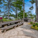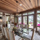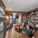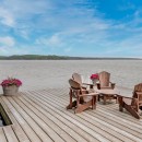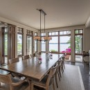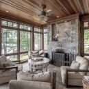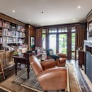 For those who need to work or focus, a private office is equipped with two leather sofas, a desk with built-ins, and a walkout to the outdoors. The screened Muskoka Room adds another layer of comfort, with teak furniture, a wood-burning fireplace, and dining space for eight, perfect for enjoying the views while staying protected from the elements.