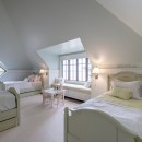 Bedroom 5: Bedroom with three single beds,  AC, WiFi and shared bathroom with shower, vanity and WC. 3 guests maximum
