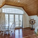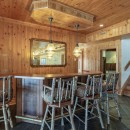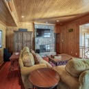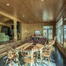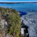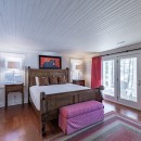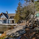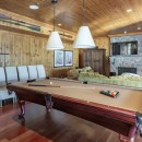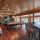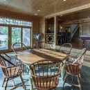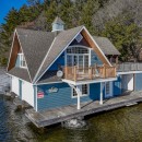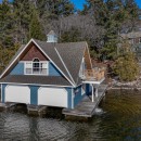 The lower level is an entertainer's dream, complete with a bar, pool table, and additional seating around another wood-burning fireplace. A separate overflow kitchen ensures all your culinary needs are met. The boathouse adds an extra touch of charm with its kitchenette, cozy seating area, king bed, and three-piece bathroom, making it an ideal spot for guests.
