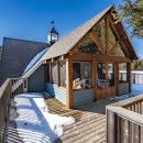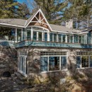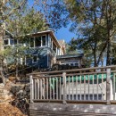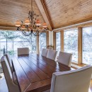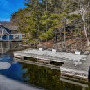 Arriving at the property, you’ll be greeted by a winding driveway leading to a welcoming porch adorned with classic white Muskoka furniture. The main cottage boasts a well-appointed kitchen featuring high-end stainless steel appliances and an oversized island perfect for gatherings. The open-concept dining room accommodates eight, while the great room offers a cozy stone wood-burning fireplace and comfortable seating.