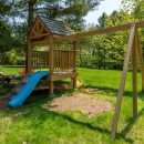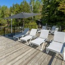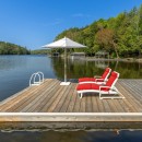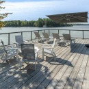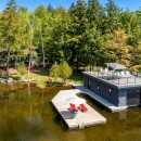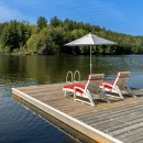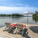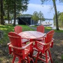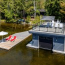 The boathouse enhances your outdoor experience with a rooftop patio furnished with loungers, a table, and umbrellas. Inside, there’s storage for a second full-size fridge and beach toys, making it convenient for all your lake activities.