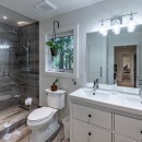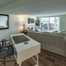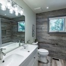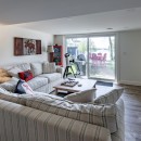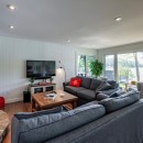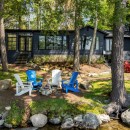 The lower level serves as a fantastic hangout space, featuring two sofas and a smart TV, along with patio doors that lead directly to the lakeside.