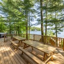 The unique Muskoka room, with its captivating lake views, provides a cozy spot for reading, playing games, or unwinding in the hot tub. This four-season room ensures comfort year-round, with easy access to the deck.