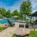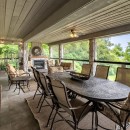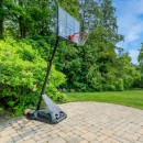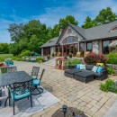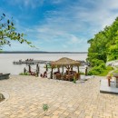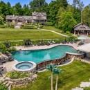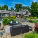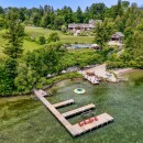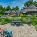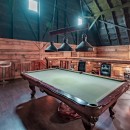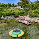 The estate impresses with its multi-level stone terrace, offering multiple seating areas and breathtaking views of the lake. A stroll down to the waterfront reveals serene pathways and access to the barn, converted into an entertainment center featuring a pool table and a projector TV—a haven for indoor fun.