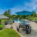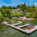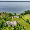 Nestled on a sprawling 17-acre property with 730 feet of stunning water frontage, Parkland Estates offers a rare blend of luxury and natural beauty. The main cottage, boasting a southern exposure, features a charming stone terrace complete with a BBQ, stone fireplace, and a luxurious hot tub. Adjacent to the cottage, the pool house beckons with its custom-made pool, swim-up bar, stone waterfall, palm trees, and a quaint tiki hut—a perfect spot for relaxation and entertainment.