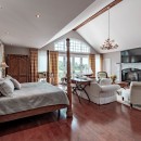 Bedroom 1: Master bedroom with a king-size bed, AC, WiFi, fireplace, walk-in closet, private balcony and en-suite bathroom with jacuzzi bathtub, shower, double vanity and WC. 2 guests maximum