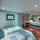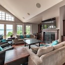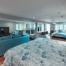 The upper level features a living area as part of the Master Bedroom suite, complete with a TV, yoga room, and a private deck overlooking the serene waters. The lower level continues to impress with its custom bar, recreational area, and additional laundry facilities.