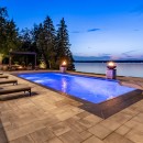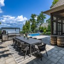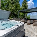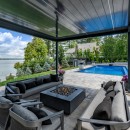 Outdoors, the landscaped grounds feature multiple tiers, an outdoor kitchen equipped with top-of-the-line BBQ and smoker, and a dining area for 12. A 40' saltwater pool with loungers invites you to unwind, while a 12-person Jacuzzi and outdoor shower provide further relaxation options. A pool house offers convenience with a 2-piece bath and changing room, and a gazebo with a gas fireplace is ideal for cozy evenings. Enjoy breathtaking sunsets from the viewing deck with Muskoka chairs and a fire pit. Down by the waterfront, a large dock with a boat lift, canoe, paddle boards, and kayaks awaits adventure seekers.