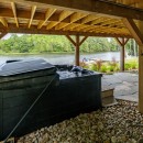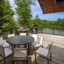 Outdoor amenities enhance the experience, with multiple seating areas, propane heating lamps, a pizza oven, and a Weber BBQ with a direct line. Enjoy sunrises over the lake with east exposure and engage in various activities, including basketball, kayaking, paddleboarding, and wakeboarding. The property is perfect for families seeking adventure and relaxation in a stunning natural setting.