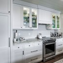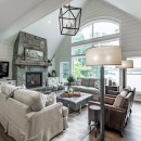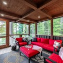 Inside the main cottage, you'll find a welcoming entryway that leads to a laundry/mudroom with an additional fridge. The open-concept kitchen features high-end stainless steel appliances and a large island with bar seating for four, making meal prep a joy. The dining room, which overlooks the outdoor space, comfortably seats eight. The living room is a highlight, featuring a full wall of windows that showcase stunning lake views, a vaulted ceiling, and a floor-to-ceiling gas fireplace. For those looking to relax, the Muskoka room offers a cozy three-season space with easy access to the outdoors.