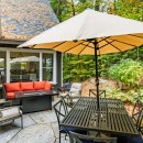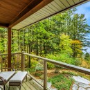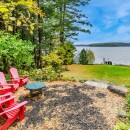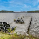 GladHome sits at the end of a tranquil country road, providing a peaceful retreat with ample privacy. The property features level grounds surrounding both the cottage and garage, making it ideal for outdoor activities. Between the cottage and garage, you’ll discover a BBQ area complete with an outdoor dining table for six and comfortable seating around a firepit. The lakeside boasts granite steps leading to a spacious grassy area, perfect for lawn games and child-friendly activities. With 100 feet of dock space, you can soak up the sun throughout the day and enjoy excellent swimming conditions in the crystal-clear waters.