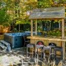 As you arrive at the cottage, a welcoming wraparound veranda sets the tone for your stay. Step inside to find a cozy living area that opens onto a back deck with breathtaking views of the lake. This space is perfect for entertaining, complete with a fire table and a BBQ that allows you to grill while soaking in the scenery. The backyard offers a wood-burning sauna and a hot tub, ideal for unwinding after a day of adventure. The dock area features comfortable loungers and a fire pit, creating a perfect spot for sunset gatherings and campfire stories.