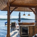 The property itself is truly unique, featuring a brand-new post and beam design that combines luxury with a classic Muskoka feel. The cottage is strategically positioned just 30 feet from the water’s edge, ensuring complete privacy from neighbors. Inside, the spacious Muskoka Room showcases a stunning vaulted ceiling and offers a cozy stone gas fireplace, along with a dining area that is perfect for gatherings. Multiple outdoor seating areas allow guests to soak in the lake views, whether lounging in the hot tub, around the lakeside fire pit, or on the large stone deck. The deep water dock and boathouse, complete with a waterside bar, enhance your outdoor experience, while the property’s layout provides both sun and shelter throughout the day.