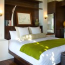 Of course, the four bedrooms have also been designed as private retreats. Three master suites feature king beds and high-end entertainment systems. Two offer a balcony with sea views and outdoor shower. The other features garden access. The remaining suite has a queen bed and garden views.