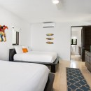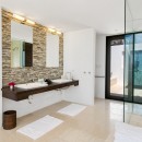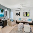 It begins with the long stretch of infinity edge pool that runs the length of the villa. Surrounded by pool deck, it blends seamlessly into the covered terrace area where lounge areas and an al fresco dining spot are situated. These lead directly indoors where companion spaces include a massive living room with banquet sofa and plush chairs, a formal dining room area, and a large and open kitchen with breakfast bar. There is also a cozy media room with full array of entertainment devices.