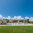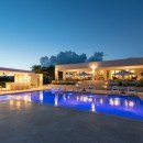 The focal point for many is the enormous pool area with its free-form, geometric pool that incorporates a wading area furnished with cooling lounges, a plunge pool, and a traditional lap pool area. The pool is framed with sun decks and features an array of lounges. At one end is a dining gazebo with bar and outdoor kitchen. Furnished as a lounge as well, it will be a constant spot for gathering at all hours to take in the scenery.