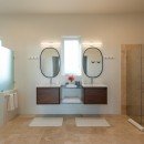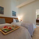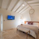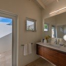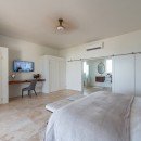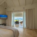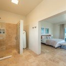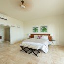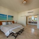 The villa also has those six bedrooms, and every single one is designed to provide visitors with a master suite experience. They are all uniquely decorated, but in that same clean and transitional style. They feature king beds and private baths. Some of the bathrooms feature tubs and showers, and some offer sea views while others emphasize the grounds.