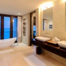 The six bedrooms offer a range of views and features. Two ground floor master bedrooms are found in their own wings of the villa, each with outdoor shower and en suite bath. There is an additional mini master as well as a garden master bedroom on a lower level, and two more bedrooms with ocean views in yet another wing on the ground floor.