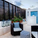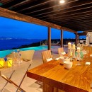 From here you can enjoy the scenery, the skies or the sea breezes thanks to the many lounge areas along the open and covered terrace. A full banquet sofa and sun bed create one of the most comfortable settings, and an al fresco dining area is adjacent to the kitchen, as well.