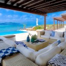 With a southwest Anguilla location on Lockrum Bay, the Villa Triton provides visitors with some of the loveliest and most inspiring views. Not only of the constantly shifting spectrum of blue and turquoise sea, but also the rolling blue and purple hills of St. Martin in the near distance. It also has a private path that guests can take to reach their own private and sheltered cove where day beds, beach chairs, and umbrellas make for unforgettable days along the sand.