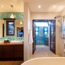 Five of the bedrooms are within the main building while three are in the adjacent guest house plus free-standing cabana bedroom positioned between the Main House and Guest House. Each offers an elegant and oversized bath. Some feature pedestal tubs and outdoor showers, and each provides you with a private terrace. All are equipped with high-end entertainment systems.