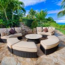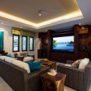 The Balinese inspired design and décor of the villa work well with the enormous and private gardens and grounds. Crafted as an array of pavilions connected by terraces, it features a pool terrace that spills over into a lower pool area. The hot tub nearby is a destination of its own, and the multiple outdoor living spaces create a range of private niches for each guest to enjoy.