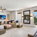 The amenities at the villa include a large, beachfront lounge with oversized sun beds (covered and open), lounge chairs, and grassy lawns leading to the terrace. Here you enjoy your al fresco dining spot, an infinity swimming pool, hot tub, and more outdoor lounge spots. Just inside, the great room is sure to become a treasured gathering spot as it welcomes you to the enormous, wrap around banquet sofa, the large dining table, or the gourmet kitchen. A media room is available with a home theater system and WiFi as well, and it is stocked with "old fashioned" games and puzzles that are sure to create hours of fun and laughter.