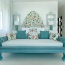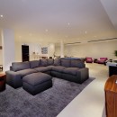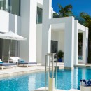 Like so many villas, this one does have an impressive pool terrace. It uses stunningly modernistic lines and features a long stretch of infinity edge pool that is backed by generously proportioned sun beds that line the white marble terrace. It faces out to the lawn and the sea, and features a modern outdoor living room at one end.