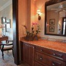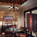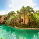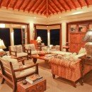 It is tucked into a gated area and sits amongst flawlessly landscaped and manicured gardens and grounds. It is remarkably private and designed to offer a home-like setting for groups of ten or less. The villa is designed to make the most of the setting and features upper and lower level spaces that incorporate indoor and outdoor settings. The heart of the property is the expansive pool terrace, beautifully designed in stone and featuring sun decks as well as shaded and well-appointed verandah spaces. The pool wraps around the property and even has footbridges, making it a destination as much as a spot for activities and swimming.