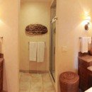 Suite 4: Bedroom with a king-size bed (can be made up as two single beds), walk-in closets, dressing table, bar, private verandah connecting door with bedroom 5 and shared bathroom (with Bedroom 5) with shower, vanity and WC. 2 guests maximum.