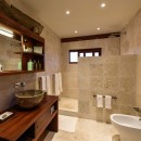 Bedroom 1: King-size four-poster bed, *AC, WiFi, shaded terrace with lounge seating and en-suite bathroom with shower, vanity, bidet and WC. 2 guests maximum.